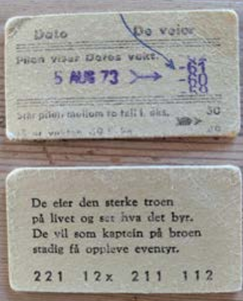 For mange av oss ble klærne fort for trange i Norge, og det var ikke bare på grunn av brunosten, som de fleste hadde som favorittpålegg, eller på grunn av softisen fra Kyllingen i Idrettsveien på Ski. Vi fikk fire måltider om dagen, og det manglet ikke på noe til frokost, formiddagsmat, middag og kvelds. Skikkelig husmannskost, som oftest laget fra bunnen av. Det ble vafler, boller og annet norsk bakstverk til kaffen om kvelden. Den friske lufta og jobben på jordene ga god matlyst, og det ble sørget for at ingen gikk sulten fra bordet. Bildet fra Ski stasjon. På Ski stasjons område sto det en vekt hvor man kunne veies mot en krone eller to, så fikk man med noen visdomsord på kjøpet. Foto forfatterne.